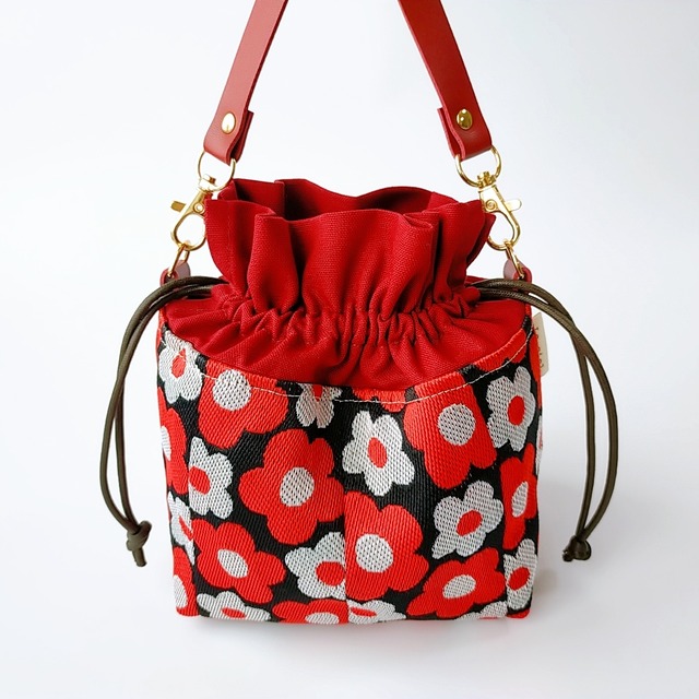 ※こちらの作品は動画撮影を行いながら完成させた、もしくは動画撮影に使用している作品です。 通常より縫い目の精度が甘い可能性があります。 また中身を入れたり出したりしながら撮影を行っております。 畳縁を使った巾着バッグを作りました。 お祭りに浴衣を着てこの巾着バッグを持って行くとても映えて可愛いと思います。 持ち手をショルダー紐に付け替えれば、ショルダーバッグとしても使用できます! 畳縁(たたみべり)とは 「畳の長手方向に付けられた布のことです。畳表の角の摩擦を防ぐため、また畳を敷き合わせる際にできやすい隙間を”しめる”などの役割があります。」(高田織物さん引用) 畳縁といえば「和」のデザインをイメージしますが、最近ではハンドメイド材料としても使用されており、畳縁とは思えないくらいたくさんの可愛いデザインがあります。 私自身も畳縁の魅力にハマり、色々なデザインの畳縁を組み合わせた作品作りを楽しんでいます。 過去に「キルトジャパン2023年7月号64・65ページ」にも作品を掲載していただいております。 【完成サイズ】 横24cm(底14cm)×縦12cm(口布まで19cm)×マチ10cm 【発送について】 ◎クリックポストにて発送いたします 発送の際は、マチがありますので、厚み3cm以内に収まるよう底を折りたたんで、厚みが出ないように軽く圧縮する予定です。 到着時にシワがついてしまう可能性がありますので、形を整えてからご使用くださいませ。 クリックポストを選択した時点で、シワがついてしまう可能性について了承していただいたとみなします。 【他の配送方法を希望する場合】 ◎お問合せください 形崩れが心配な方は、ゆうパックでの発送も可能です。 お住まいの地域によって送料が異なります。 ゆうパックを選択した場合、「5000円以上のご購入で送料無料」は適応対象外とさせていただきます。 ※FLATさんの畳縁を使用しています ※写真5枚目以降は参考写真です。 ※撮影に使用している小物類は商品ではありません。 ☆こちらの作品は、私が配信している作り方動画、you tubeの撮影に使用した作品、もしくは同じレシピで作った作品です。 you tubeの撮影に使用した作品は、通常よりも縫い目が甘かったりゆがみがある可能性があります。 https://youtu.be/3XW4_6QVe_A 以上の点をご理解の上ご購入をお願いします。