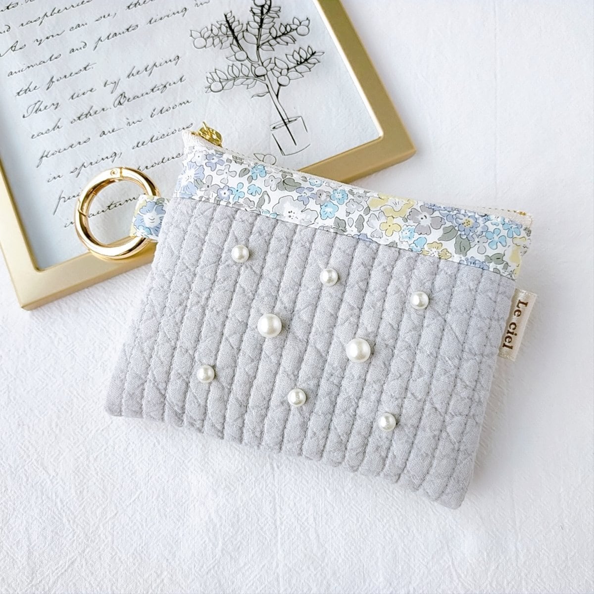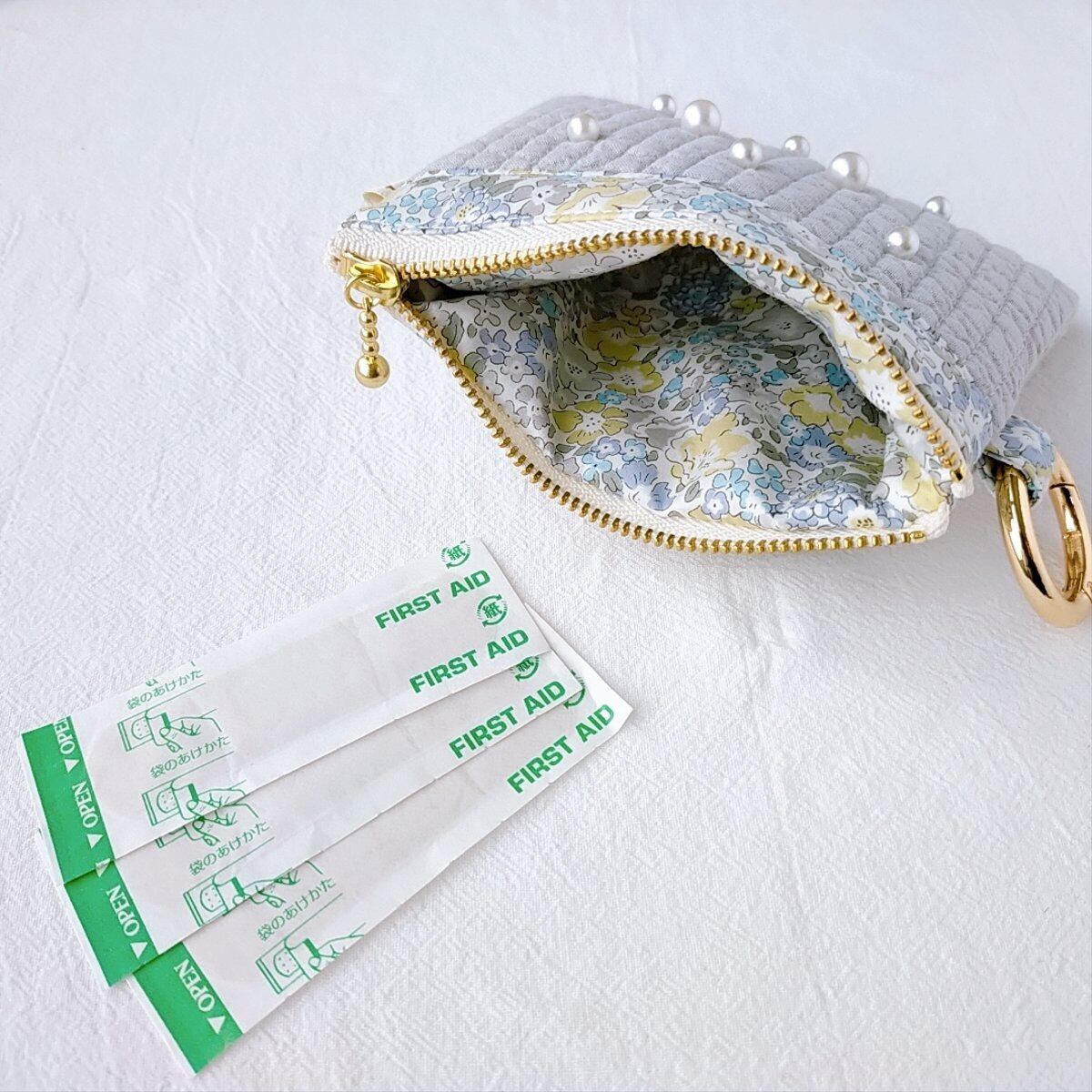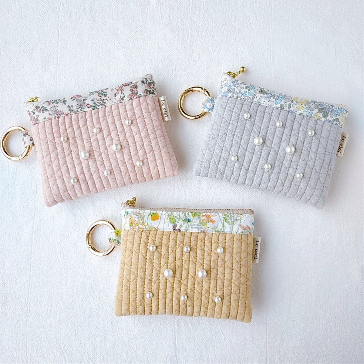 「Liberty×ヌビ×パール」の最強コンビでパールつきミニポーチを作りました。