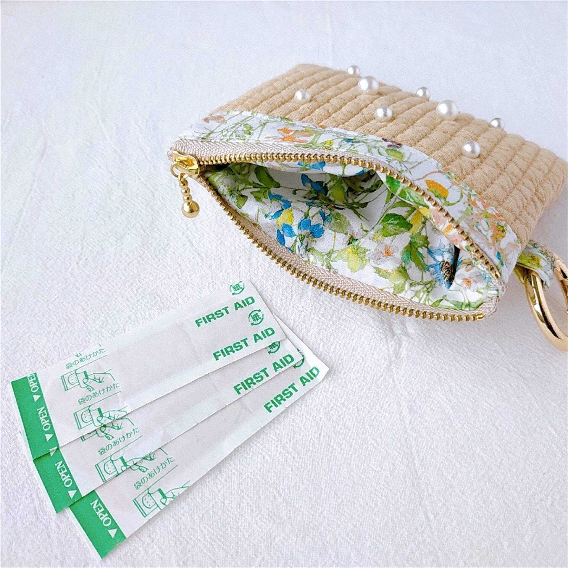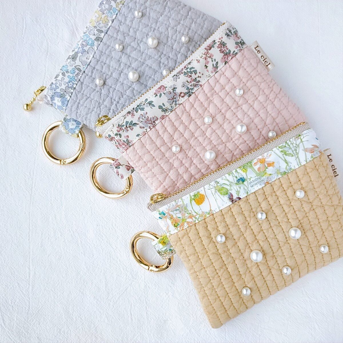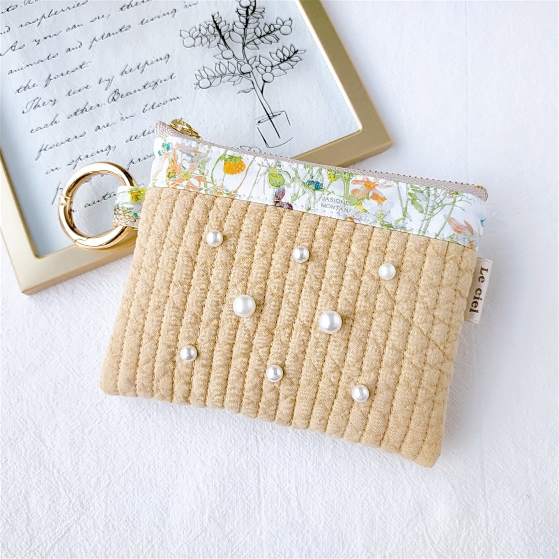 「Liberty×ヌビ×パール」の最強コンビでパールつきミニポーチを作りました。