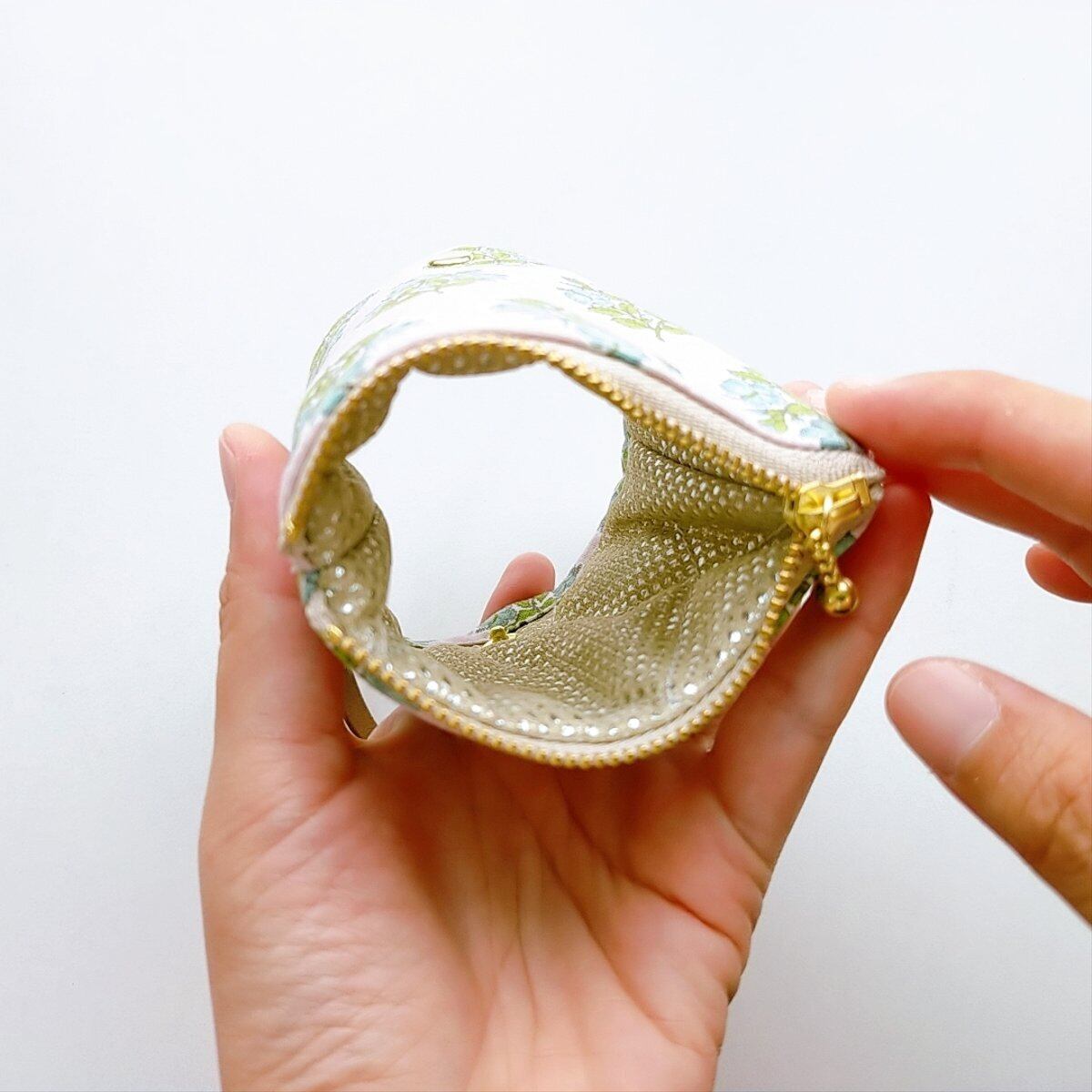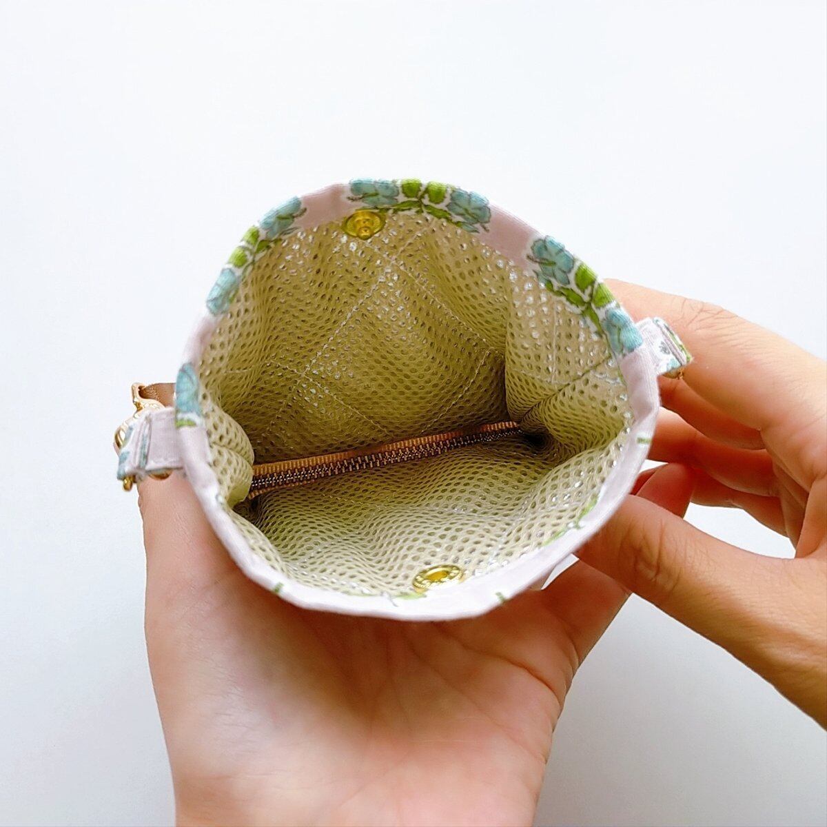 ファスナーを閉じれば、バッグの中で迷子になりがちな小物入れとして使えます。