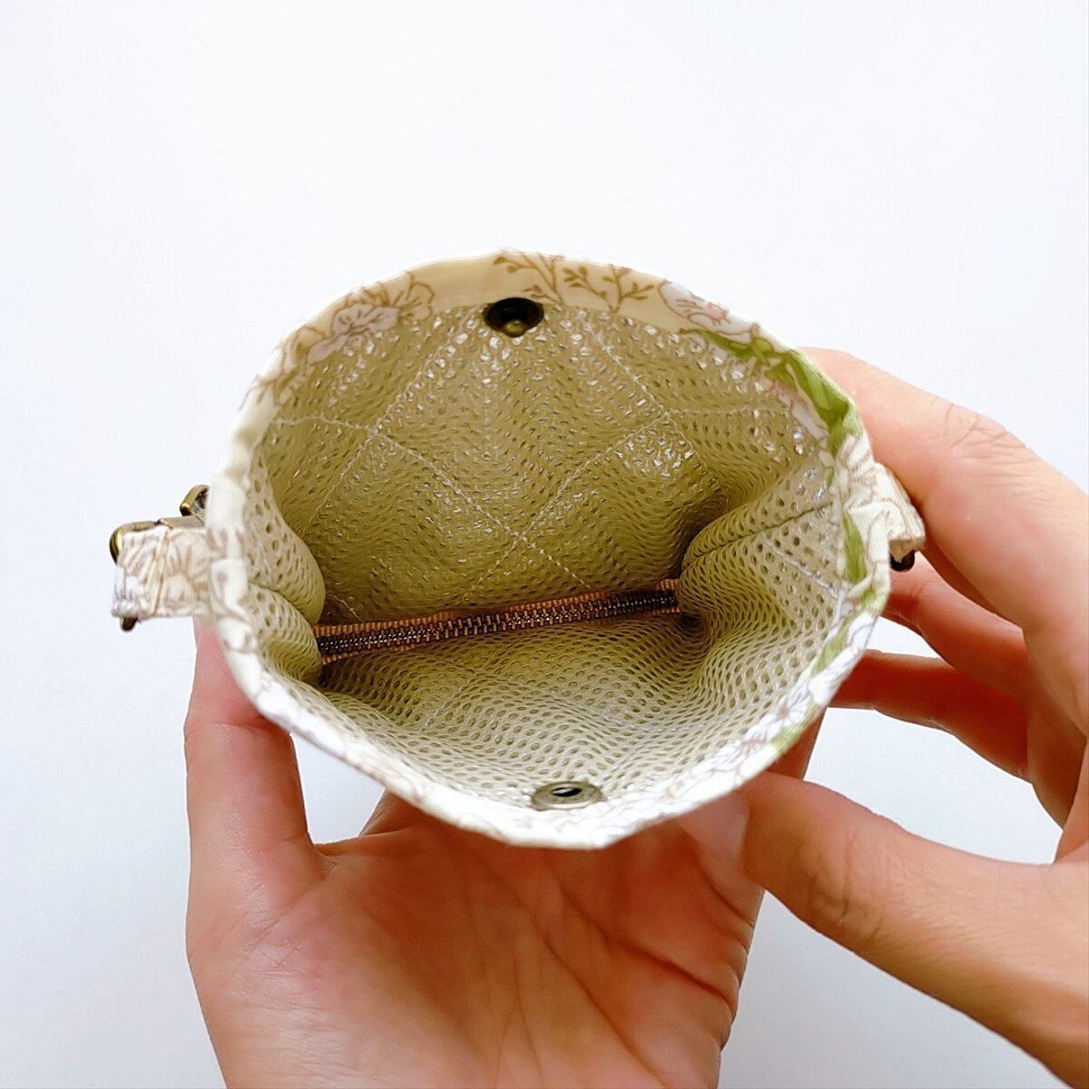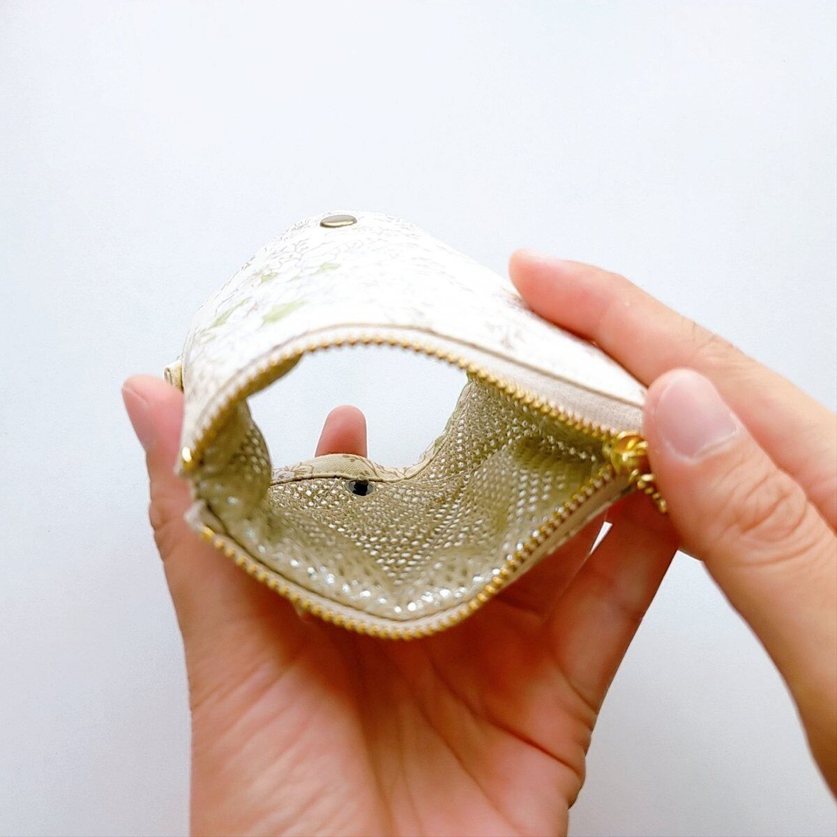 ファスナーを閉じれば、バッグの中で迷子になりがちな小物入れとして使えます。
