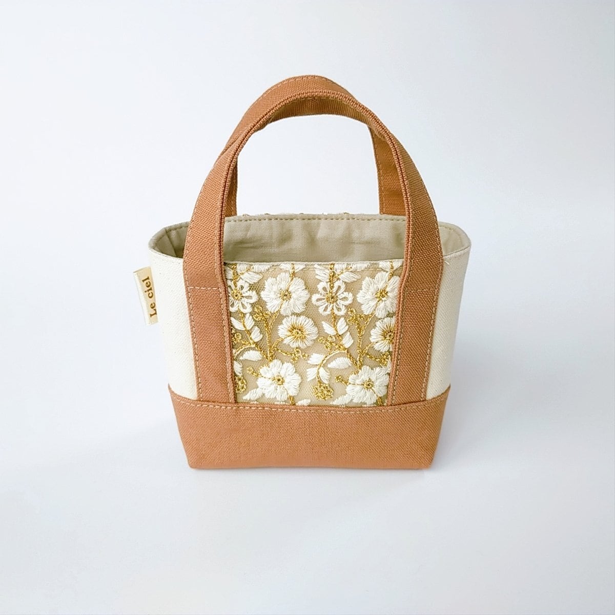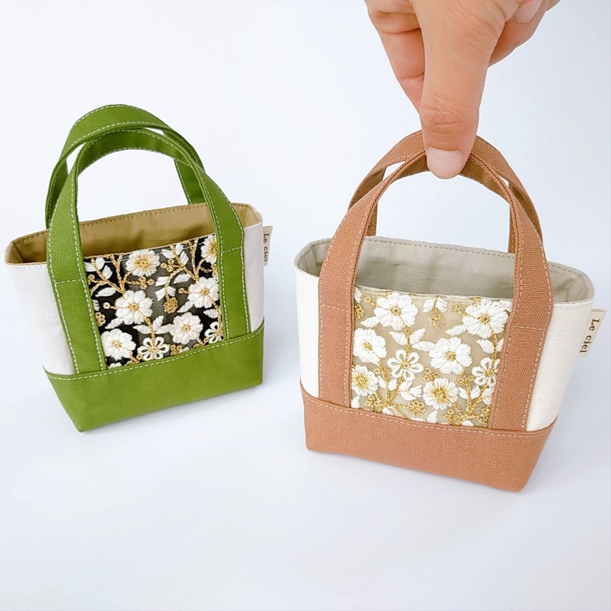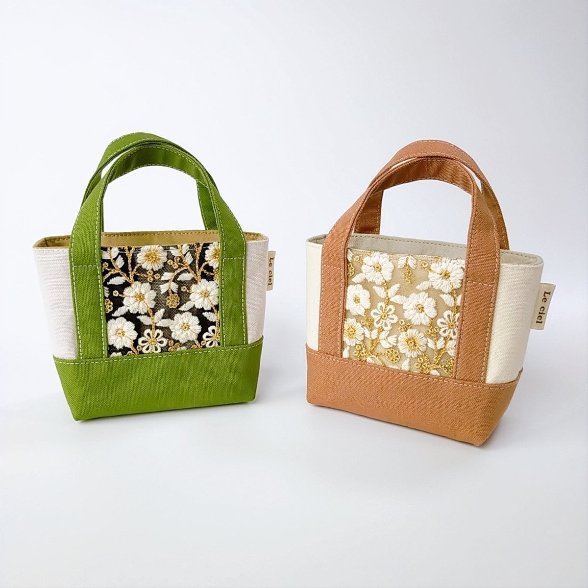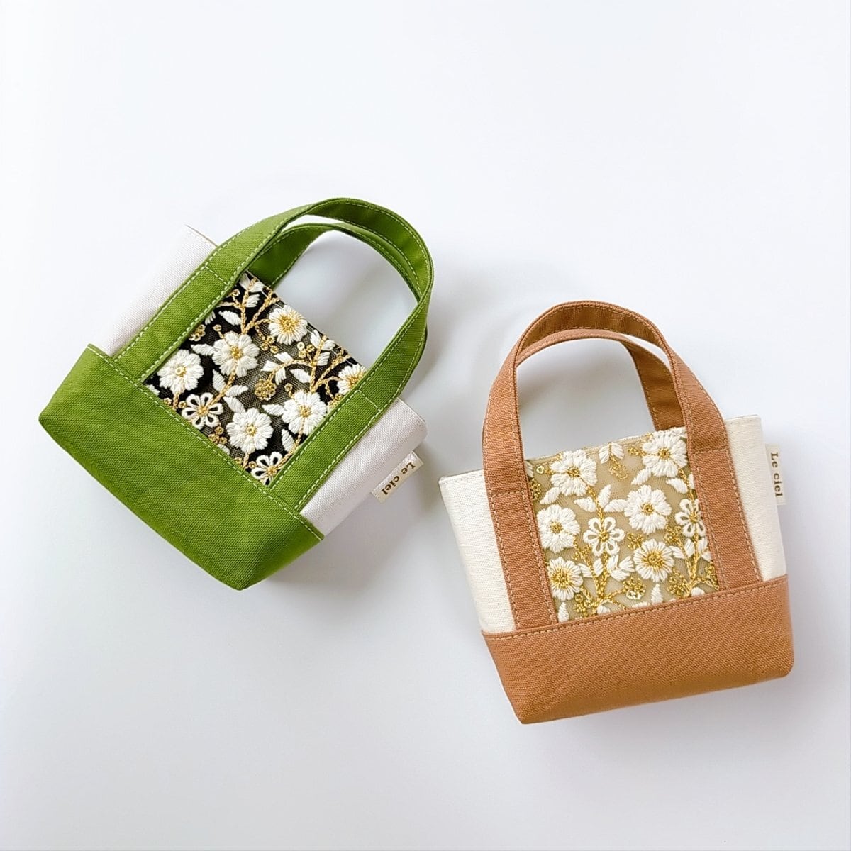 インド刺繡リボンを使ってミニトートバッグを作りました。
