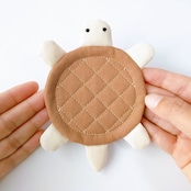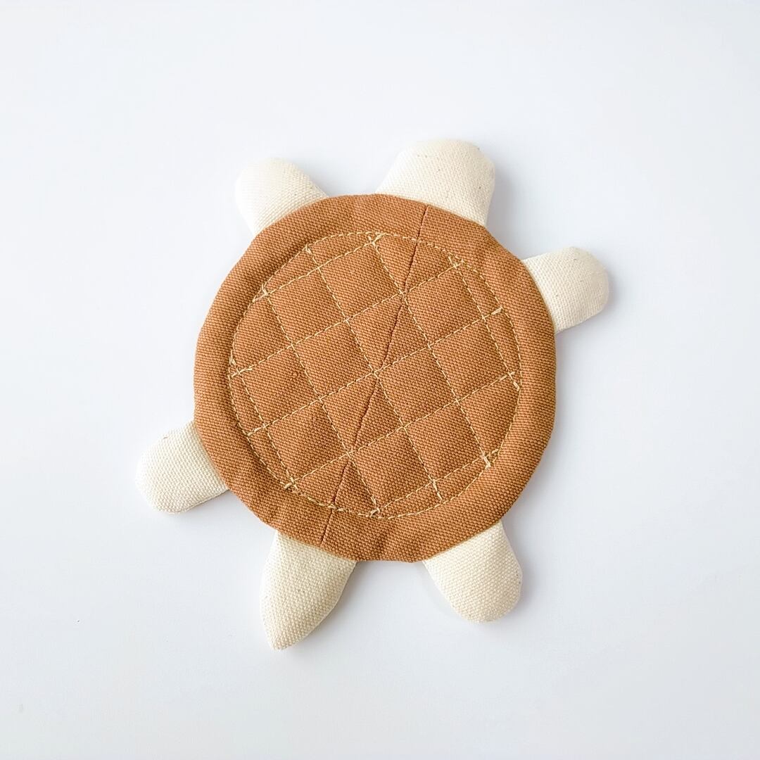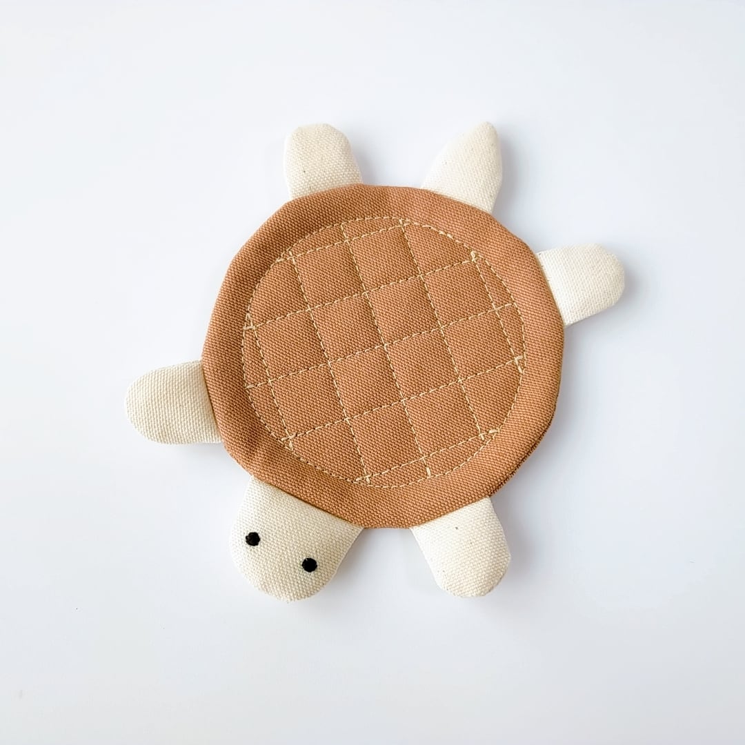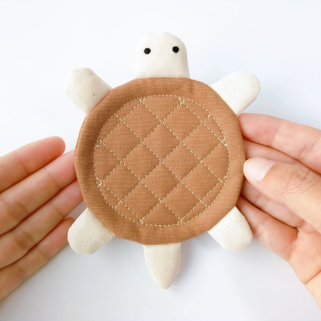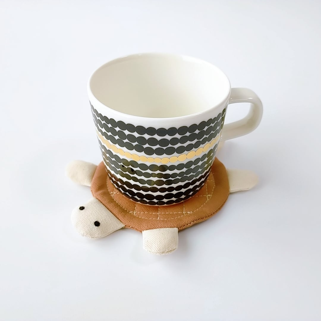 甲羅の模様はステッチで表現しつつ、コップを置いたときの安定感もバッチリ!