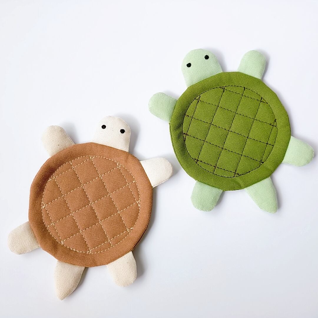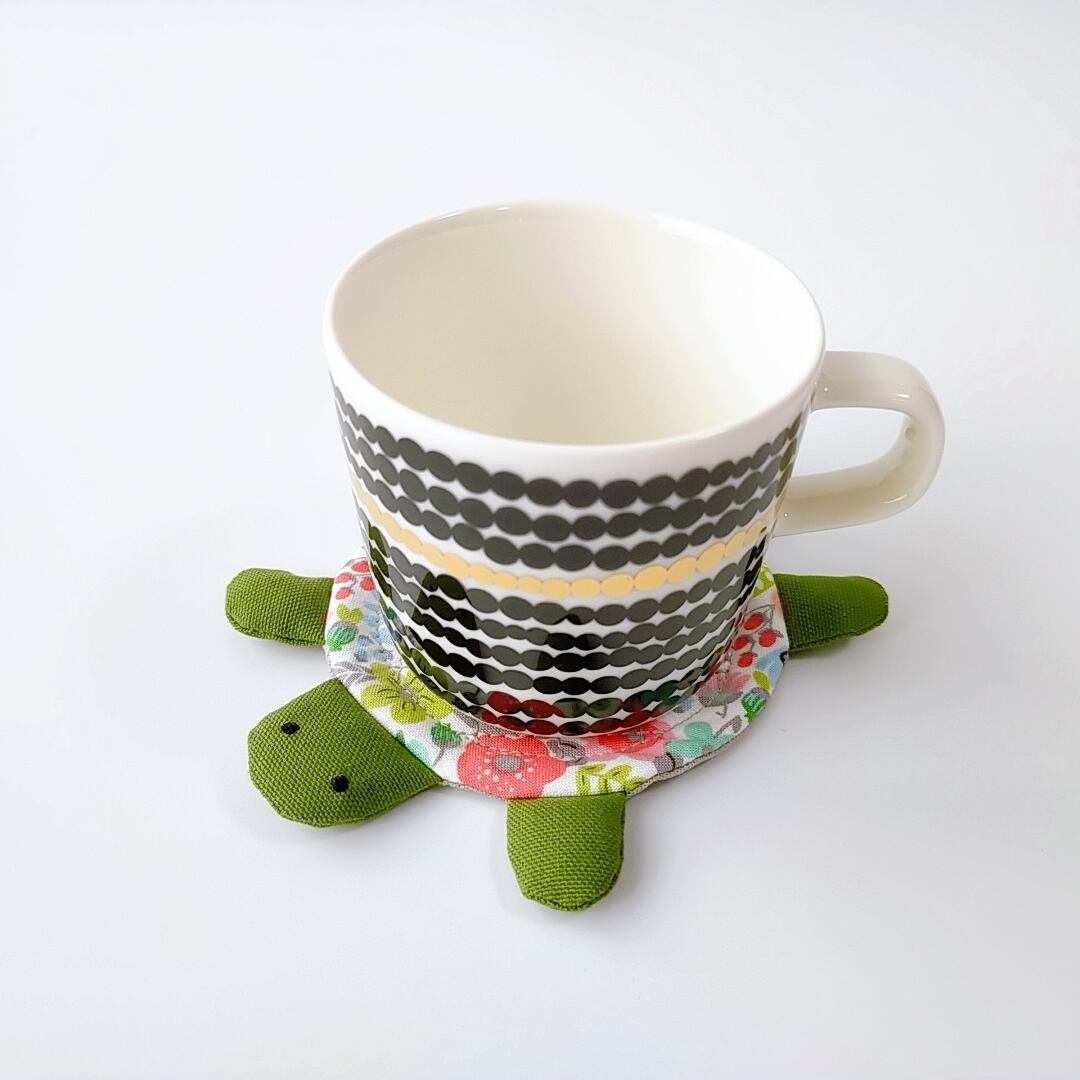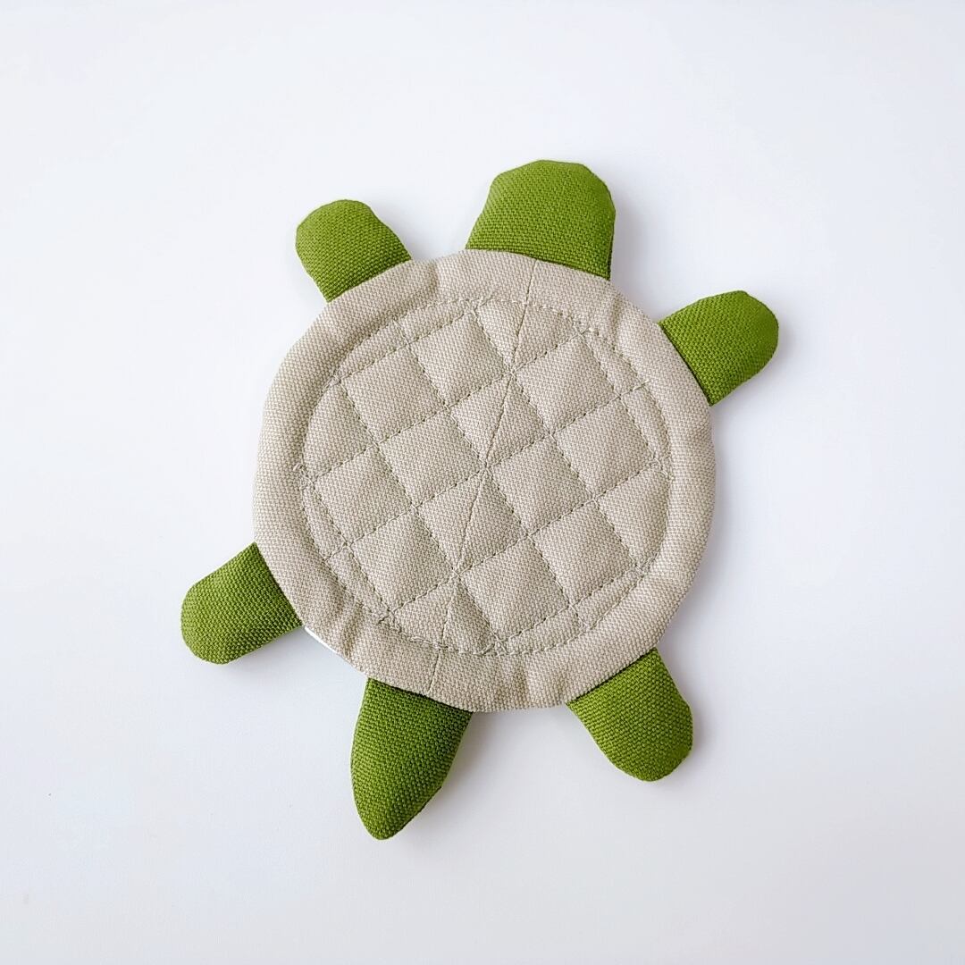 甲羅の模様はステッチで表現しつつ、コップを置いたときの安定感もバッチリ!