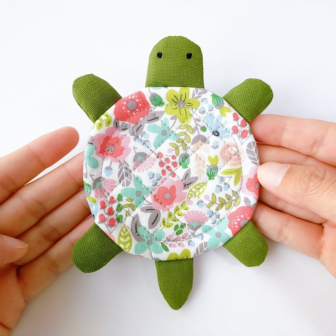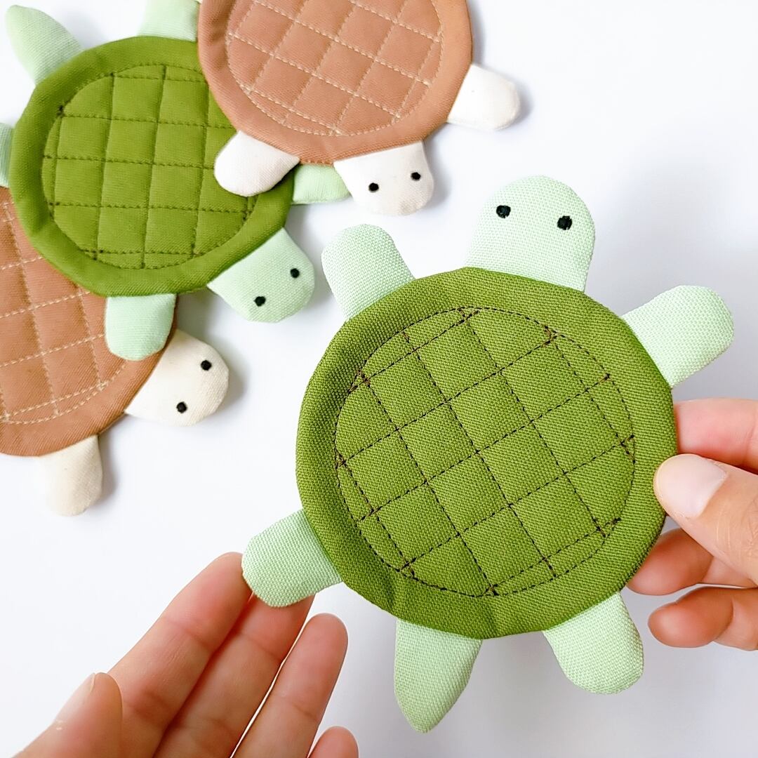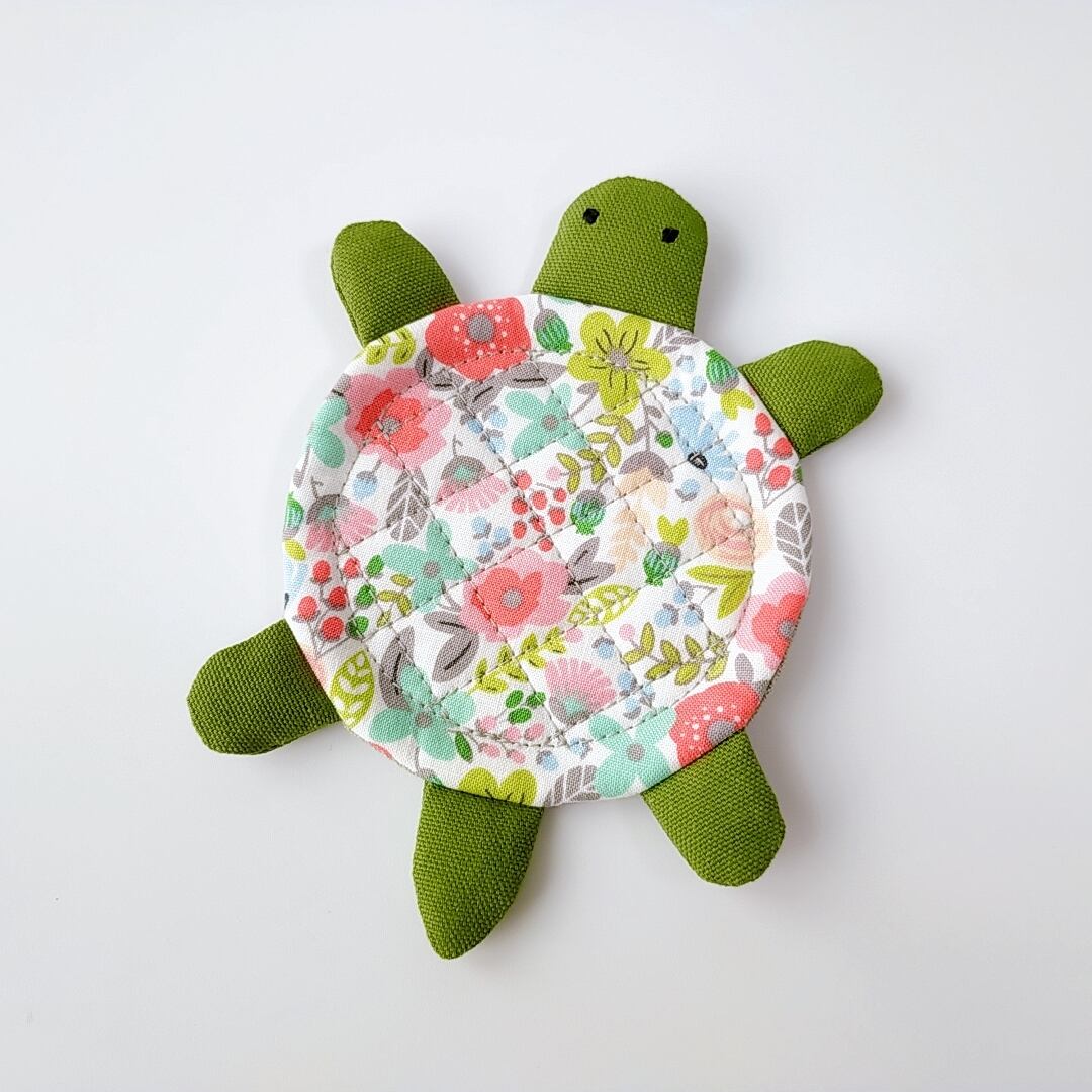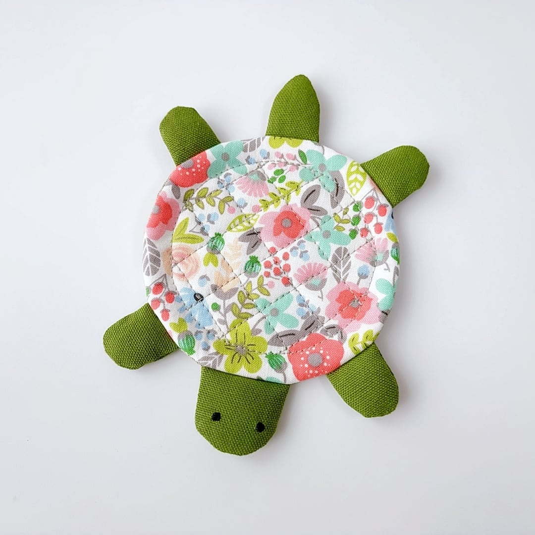 甲羅の模様はステッチで表現しつつ、コップを置いたときの安定感もバッチリ!