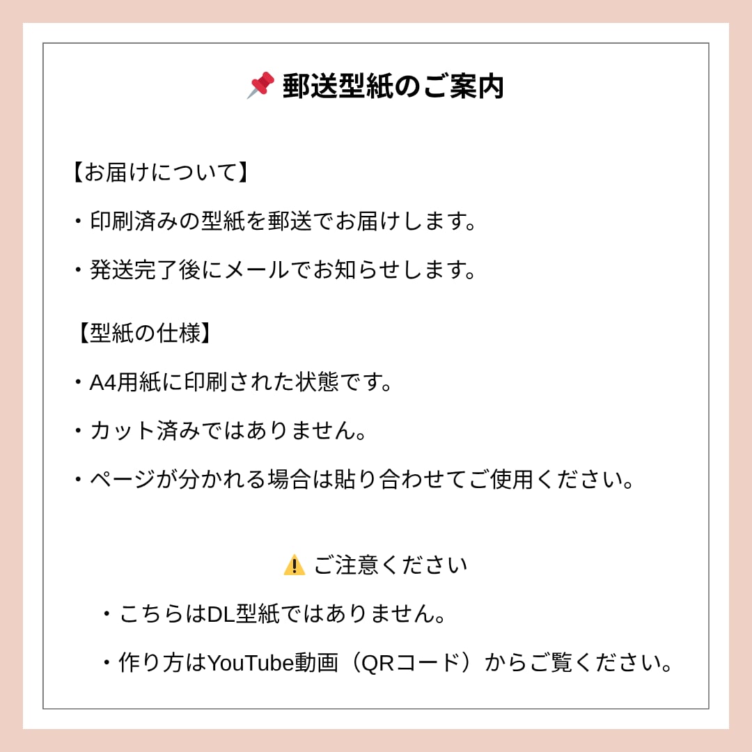 ・型紙には作り方の説明は含まれておりません。必ずYouTube動画をご覧ください。