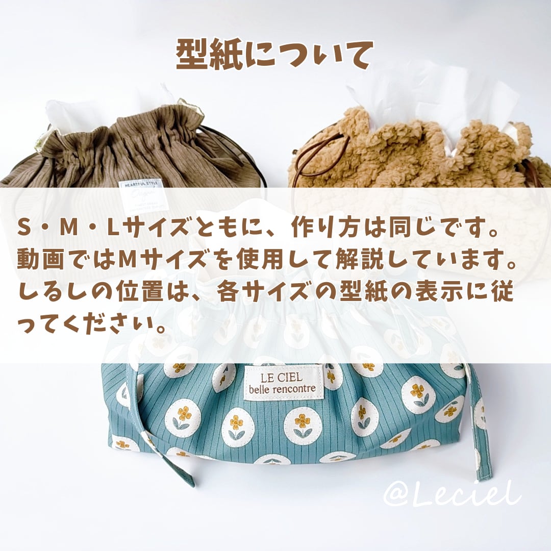 【DL型紙(A4)】巾着ティッシュケース全サイズ(S/M/L)セット
