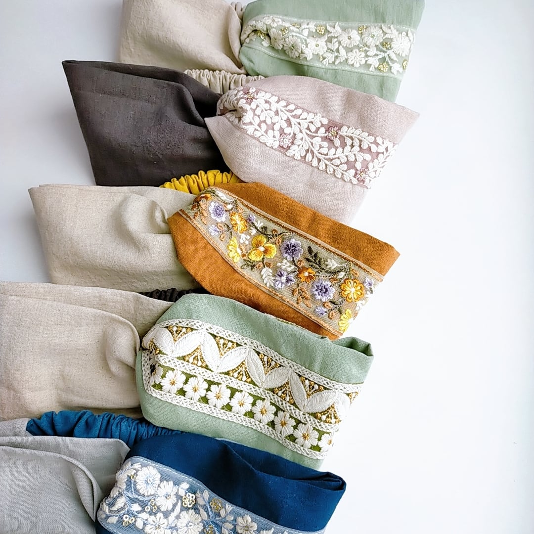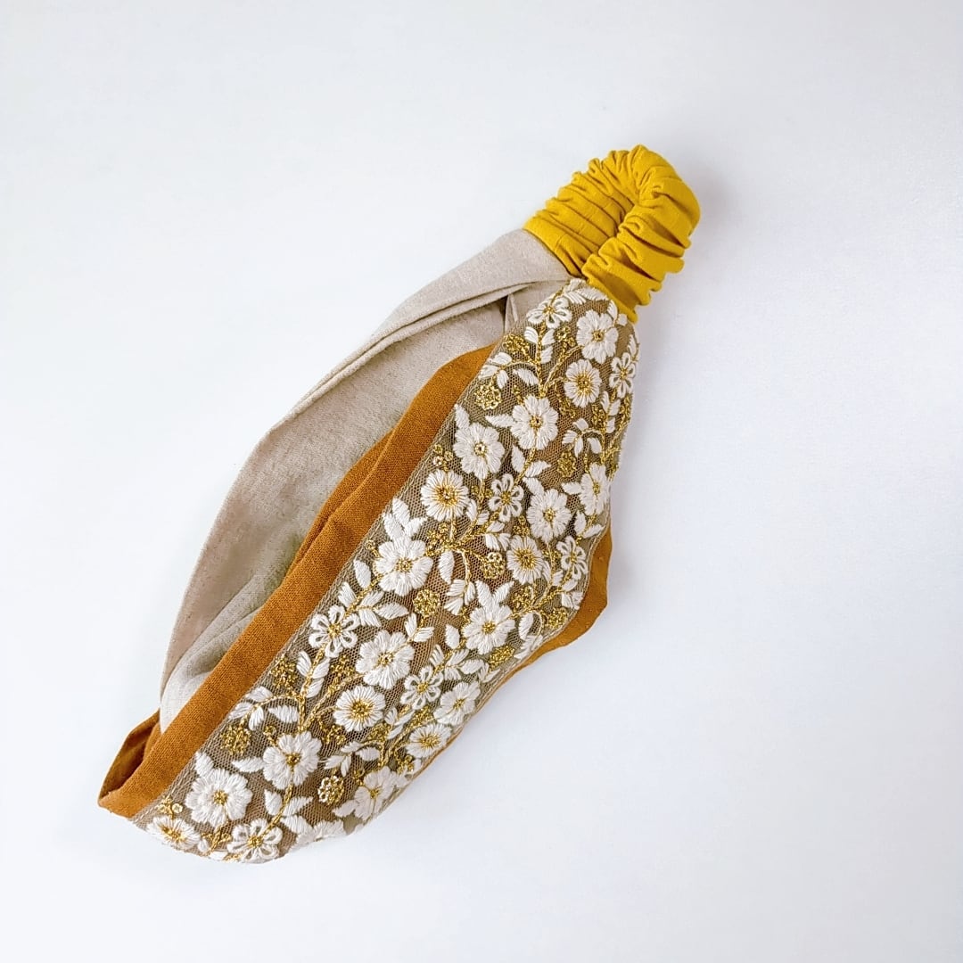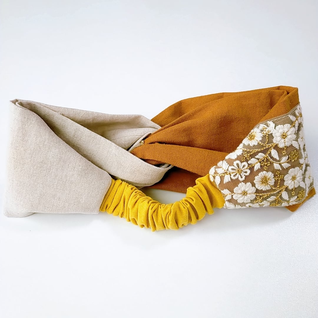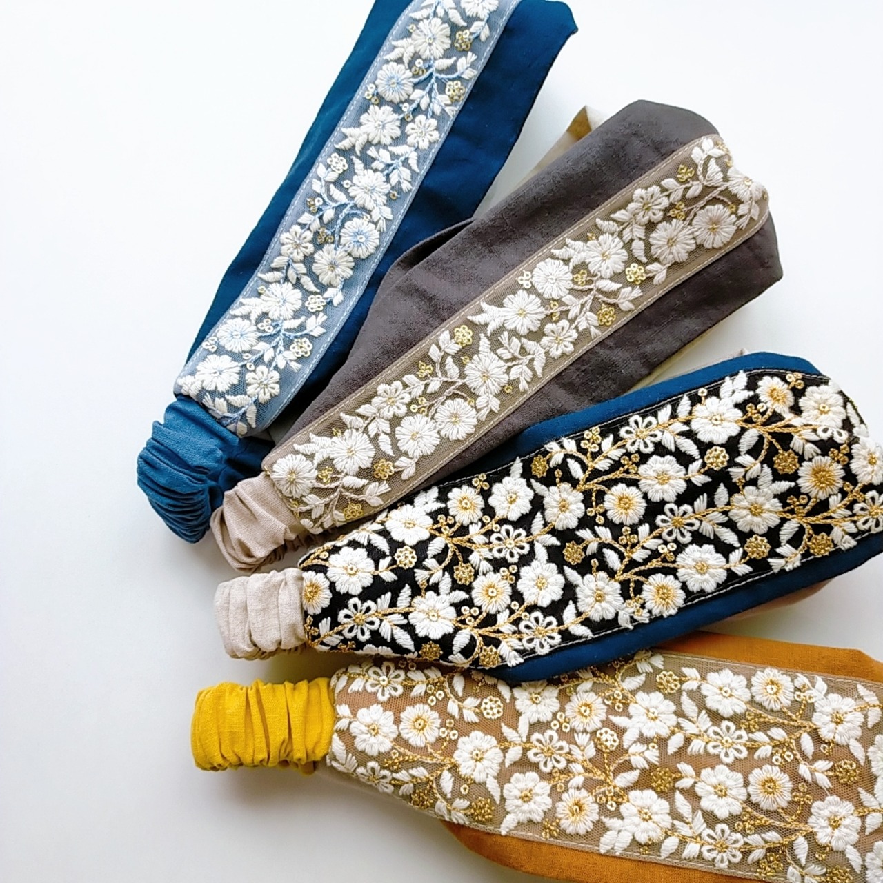 インド刺繡リボンを片側に使ったクロスタイプのヘアバンドを作りました!